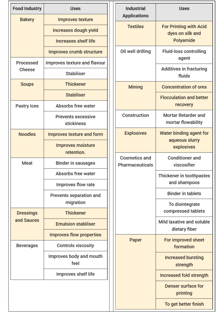 Guar gum is a natural high molecular weight polysaccharide galactomannan, with a mannose to galactose ratio of 2:1, combined through glycosidic linkages. The guar seeds are dehusked, milled and screened to obtain guar gum. It is typically produced as a free-flowing, pale, off-white-colored, coarse to fine ground powder, It is a very much versatile product and it has very wide applications in different industries such as Thickener, Emulsifier, Stabiliser, Bonding Agent, Gelling Agent, Soil Stabiliser, Natural Fibre, and Fracturing Agent.